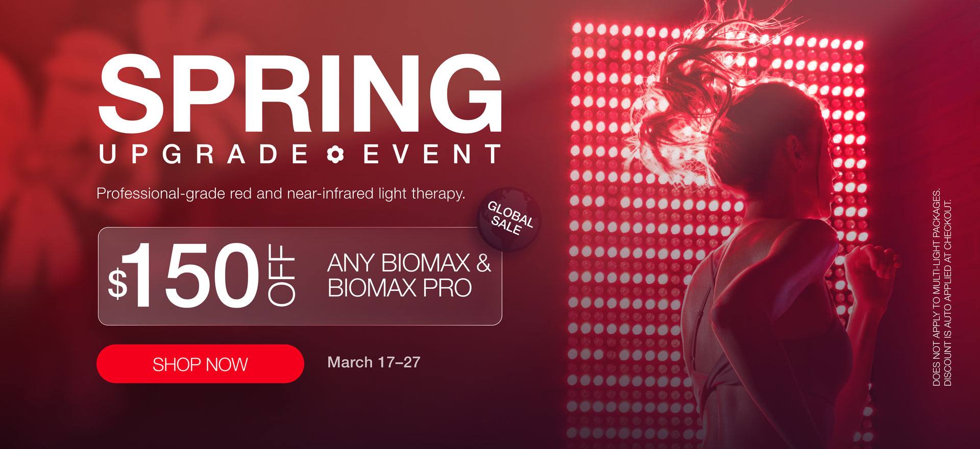 The BIOMAX series includes seven wavelengths across the red and near-infrared spectrum commonly studied in red light therapy research.